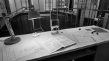 la stanza si arricchisce di una scrivania con lampada Luxo L2 e di un tavolo da lavoro,